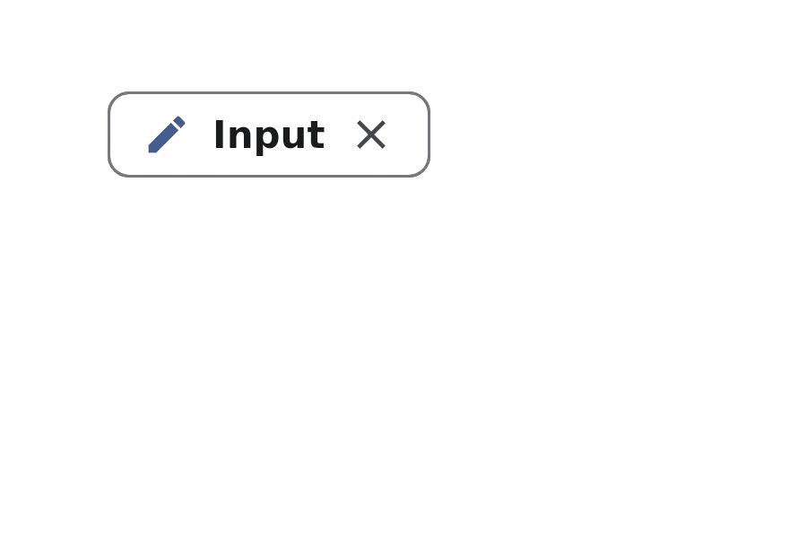 import { InputChip } from "./material.slint";export component Example inherits Window { width: 200px; height: 100px; background: transparent; InputChip { text: "Input"; leading-icon: @image-url("../icons/edit.svg"); trailing-icon: @image-url("../icons/close.svg"); width: 120px; height: 32px; }}